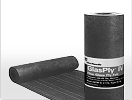 GlasPly® IV is a specially constructed ply felt that is formed by coating a JM wet-process fiber glass mat with a light film of asphalt which is then surfaced with a liquid parting agent that prevents the roll from sticking to itself, while providing a clean, easy-to-mop surface. Laying lines are applied on the top surface of the felt so it can be installed with the exposure needed to provide the correct number of plies required by the specification.